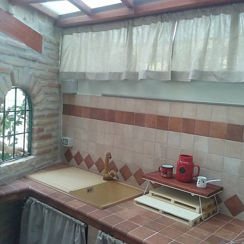 Ora è diventato il luogo ideale per una cucina all’ aperto, sfruttata anche nelle giornate più nuvolose grazie alla copertura spiovente in legno. Progetto e realizzazione su misura!!!